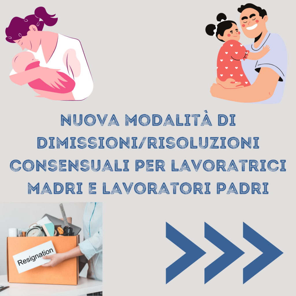 Nuova modalità di dimissioni/risoluzioni consensuali per lavoratrici madri e lavoratori padri.
